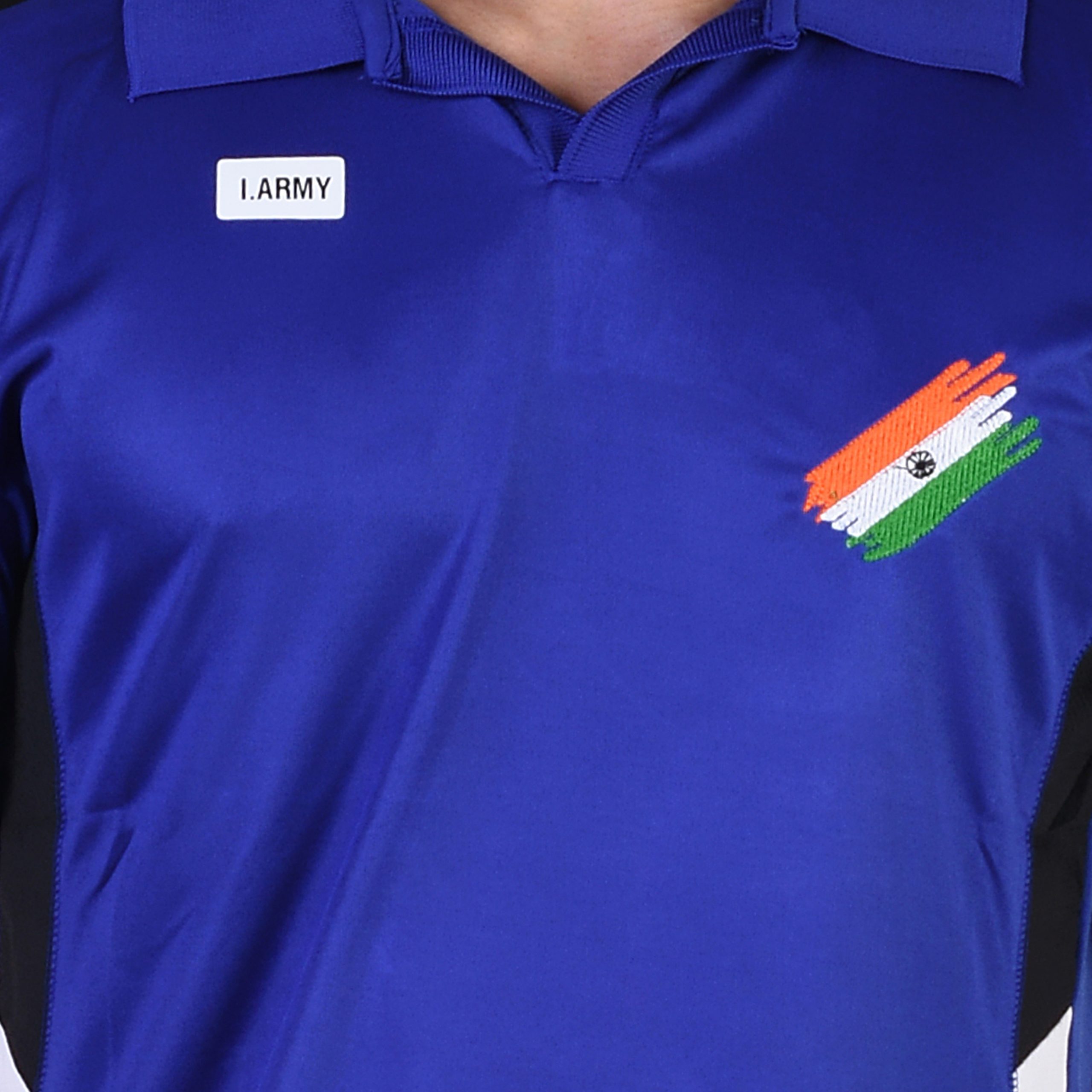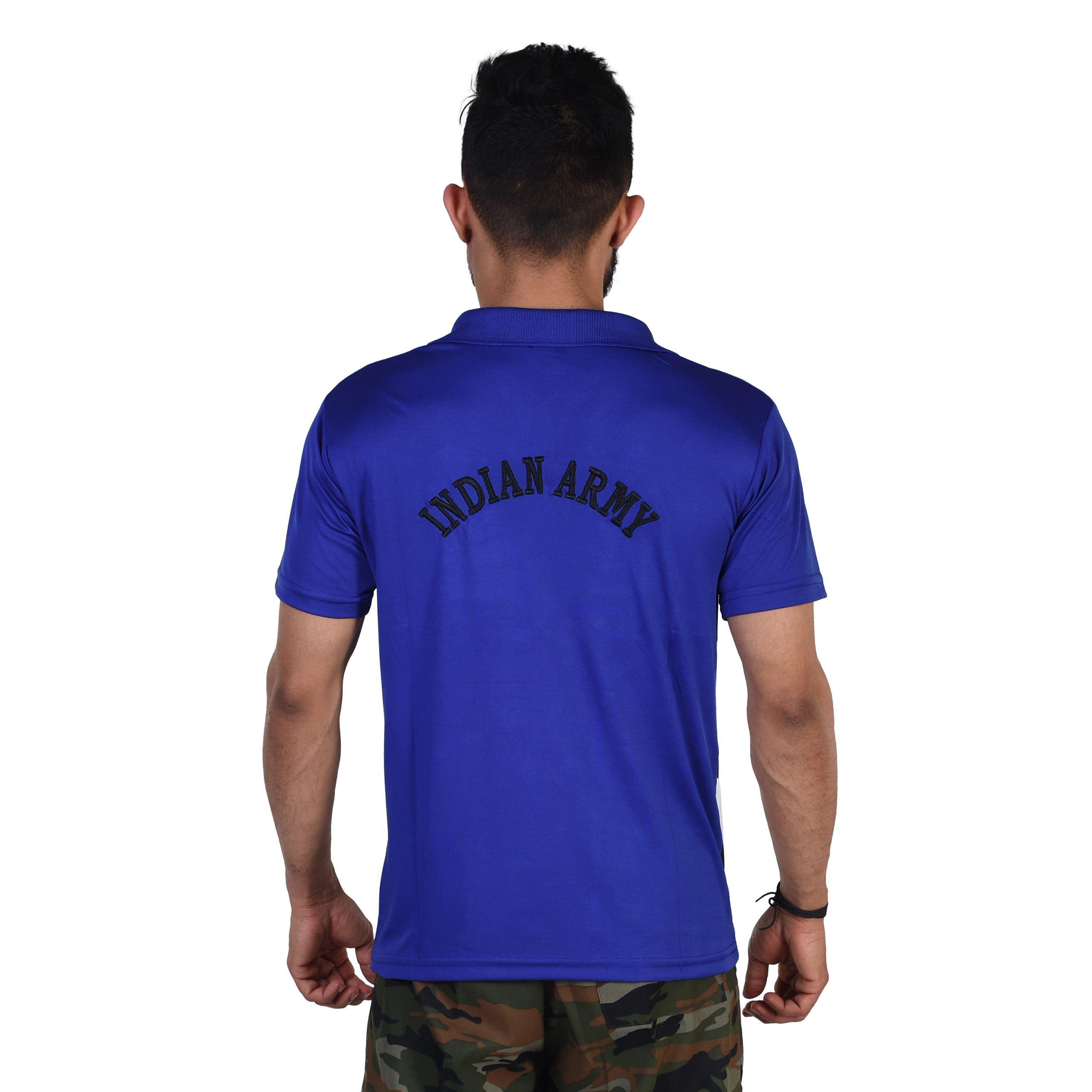 Blue Indian Army Black Embroidery Half Sleeve T-shirt