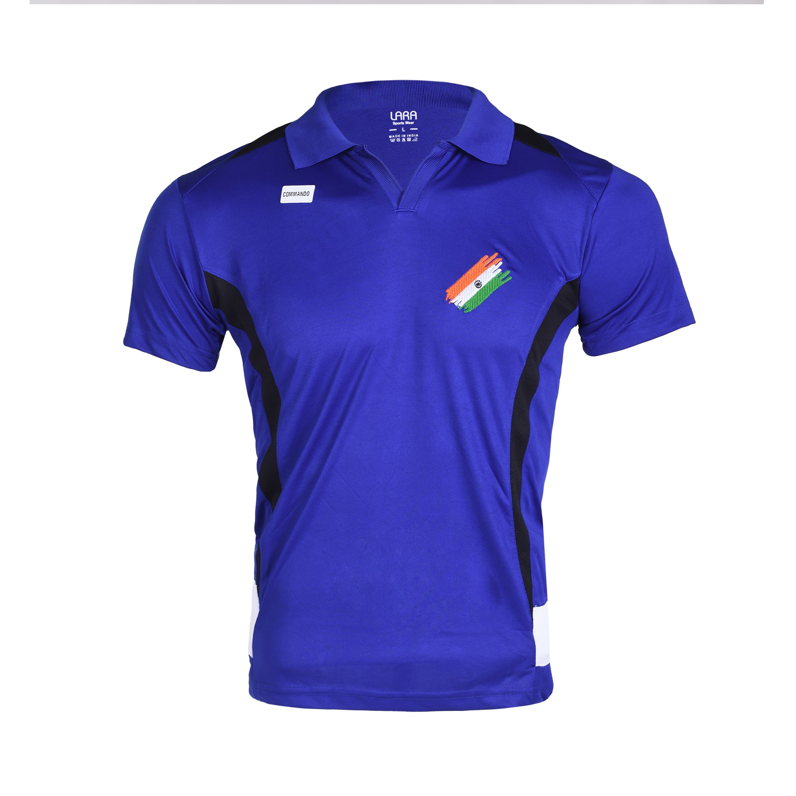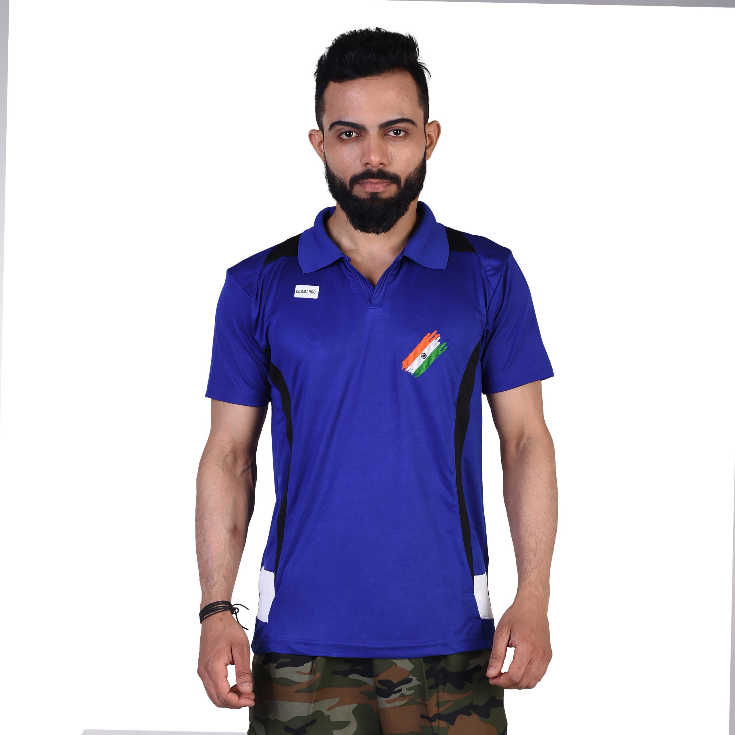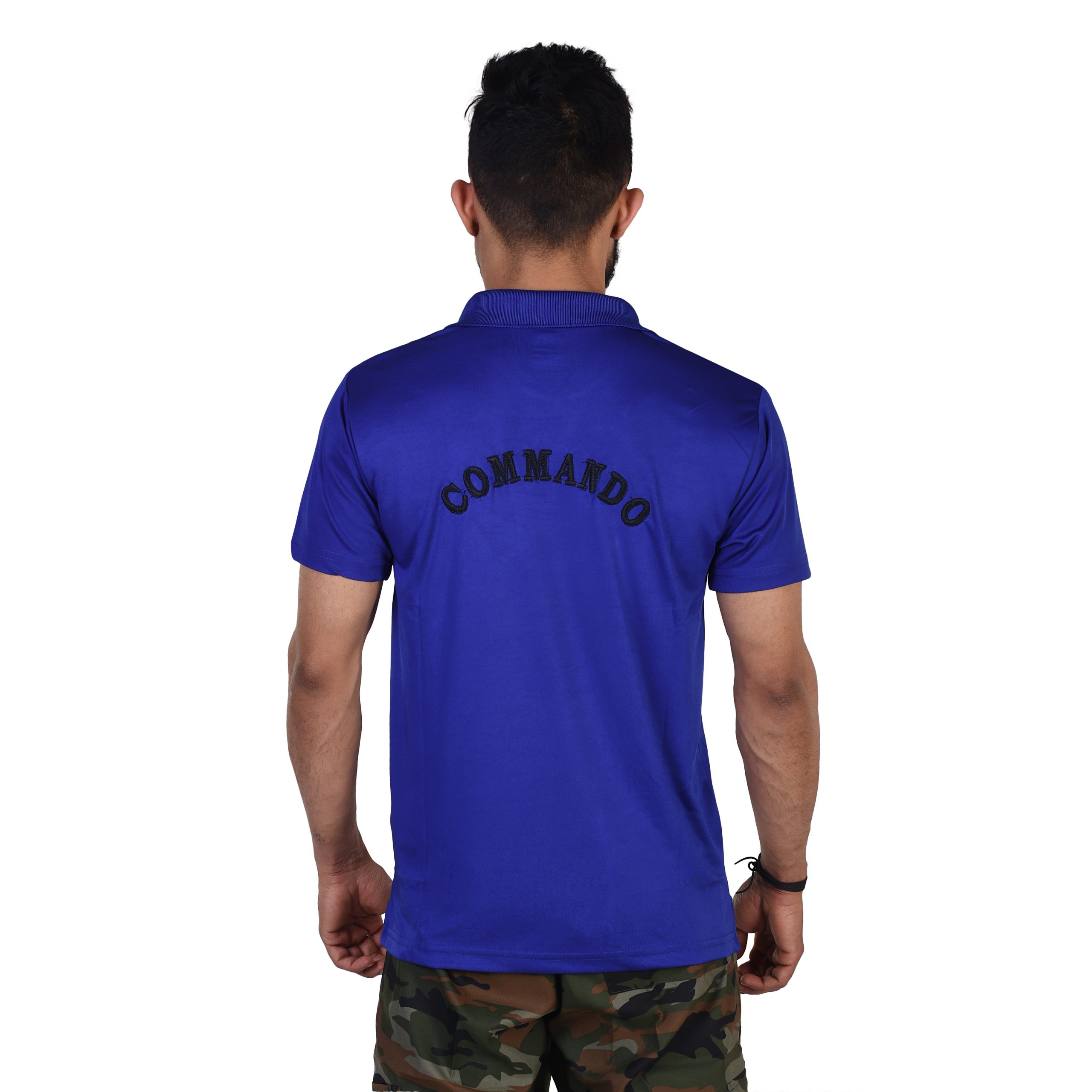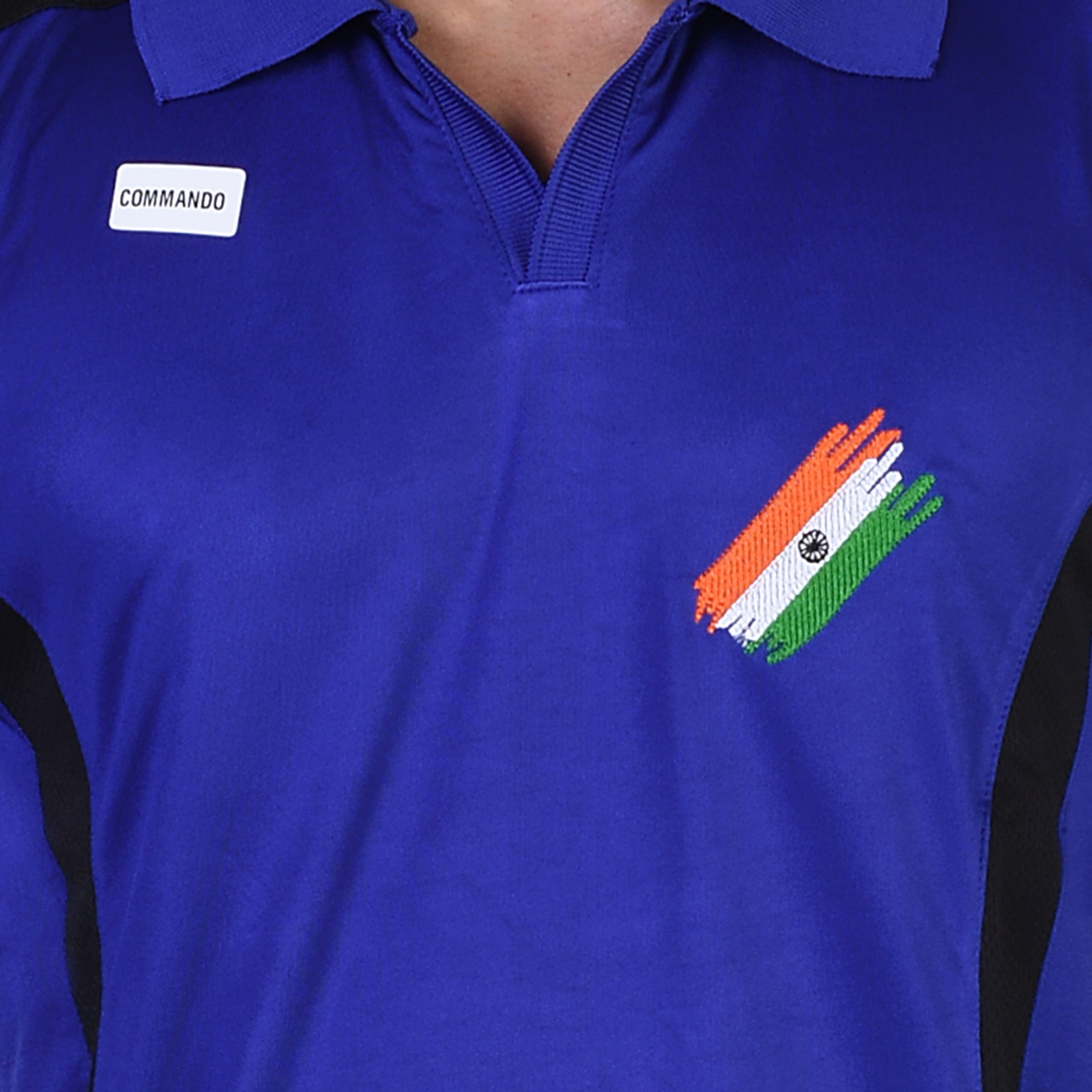 COMMANDO T-SHIRT HALF SLEEVE WITH INDIAN FLAG EMBROIDERY BLUE