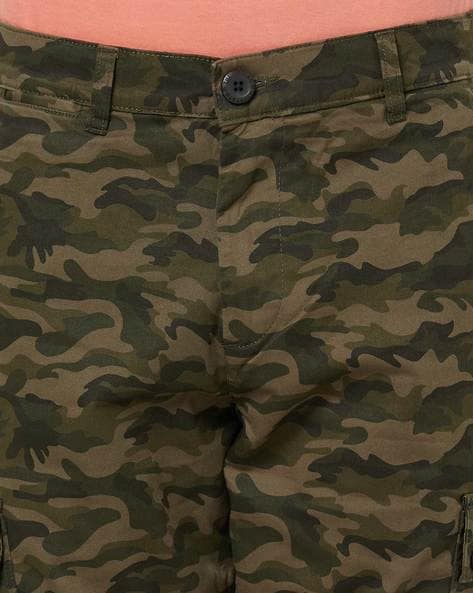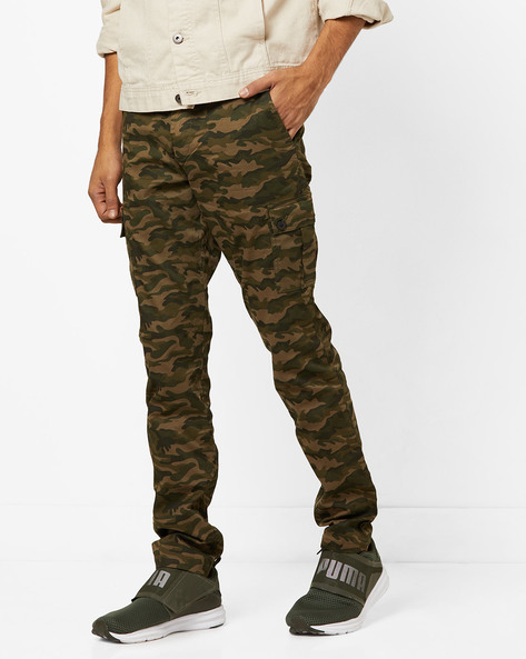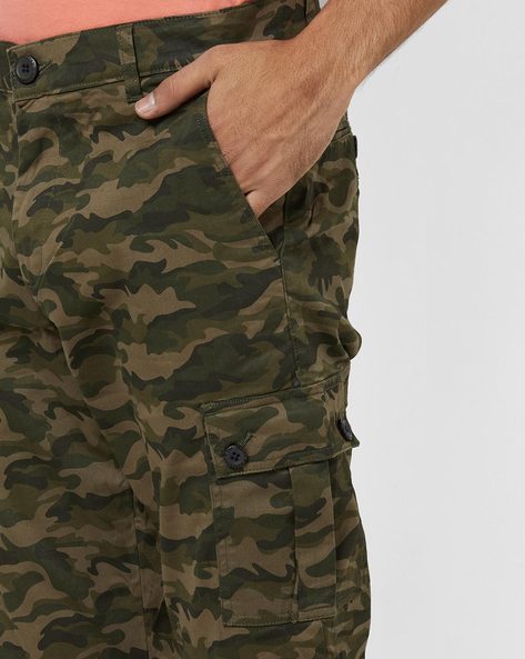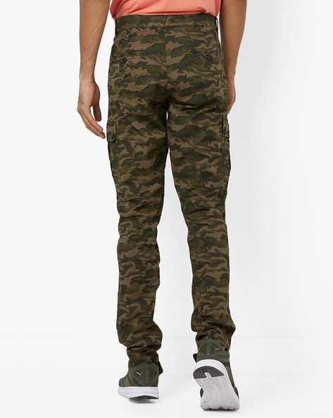 Dark Green Camouflage Print Slim Fit Cargo Pants