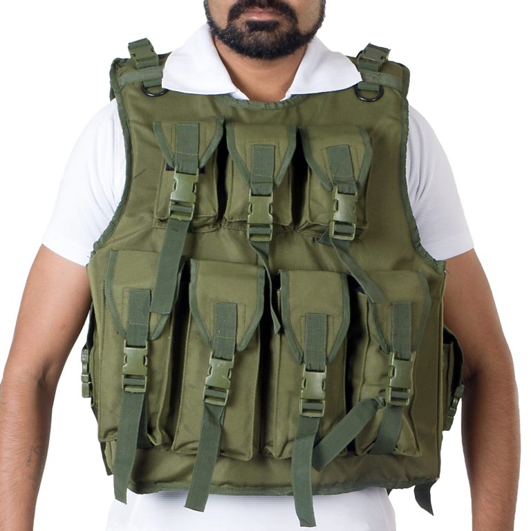 Dark Green print Bullet Proof Jacket with 10 Magazine