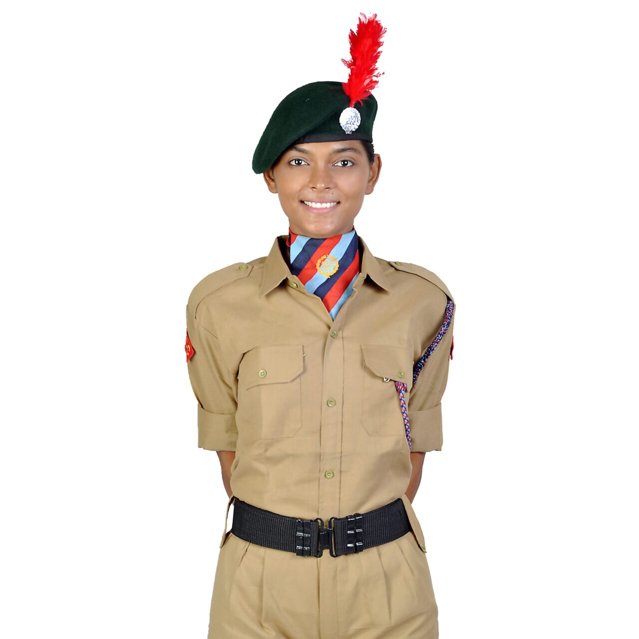 Be the first to review “GIRLS NCC UNIFORM SET WITH BERTCAP, CAP BADGE, HACKLE, BELT, HANDGLOVES, TITLE SHOULDER , LANYARD, NECK SCARF” Cancel reply