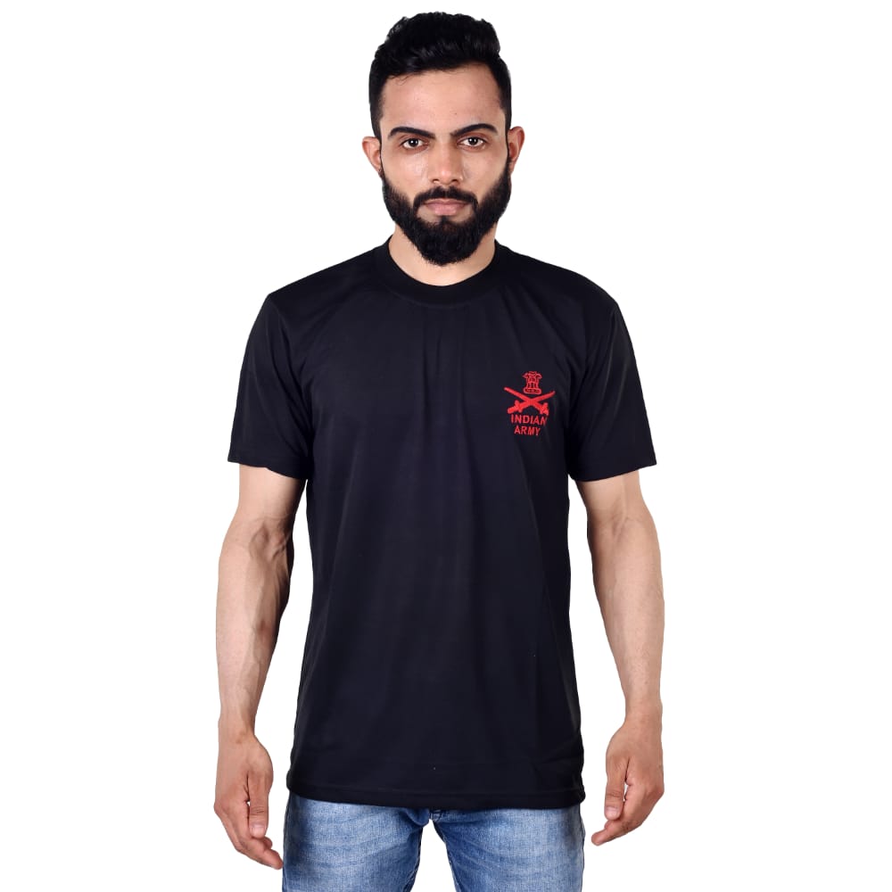 Half Indian army Embroidery both side T-shirt