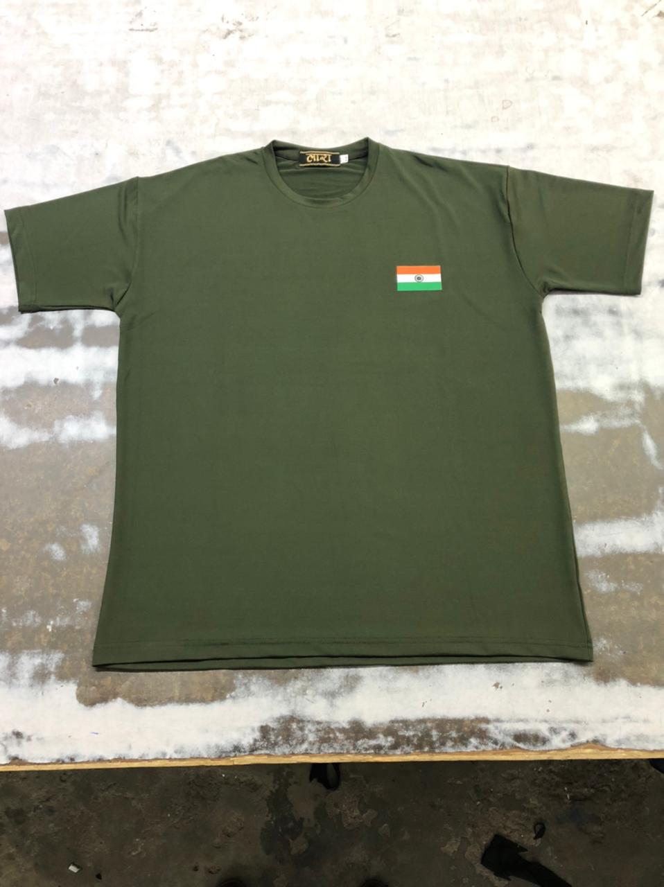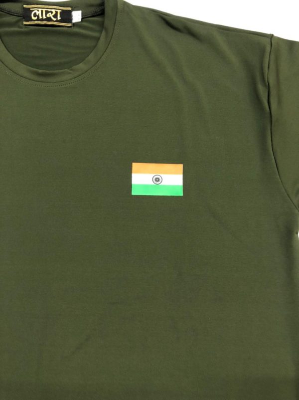 Plain Lycra Green With Flag Round Neck T-Shirt