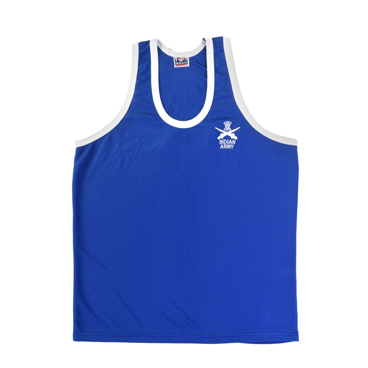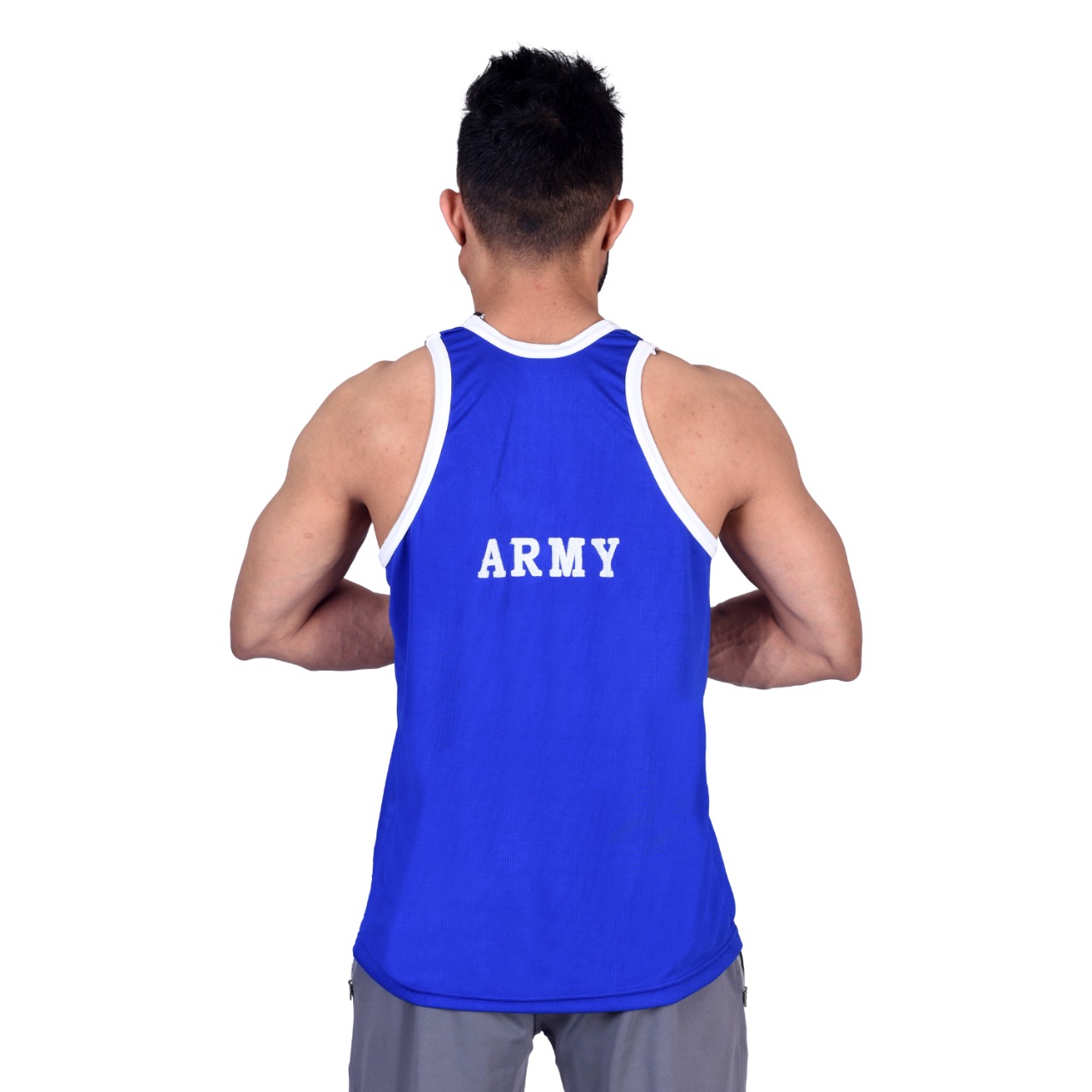 Sando sleeveless t-shirt dark blue and white with Indian army print