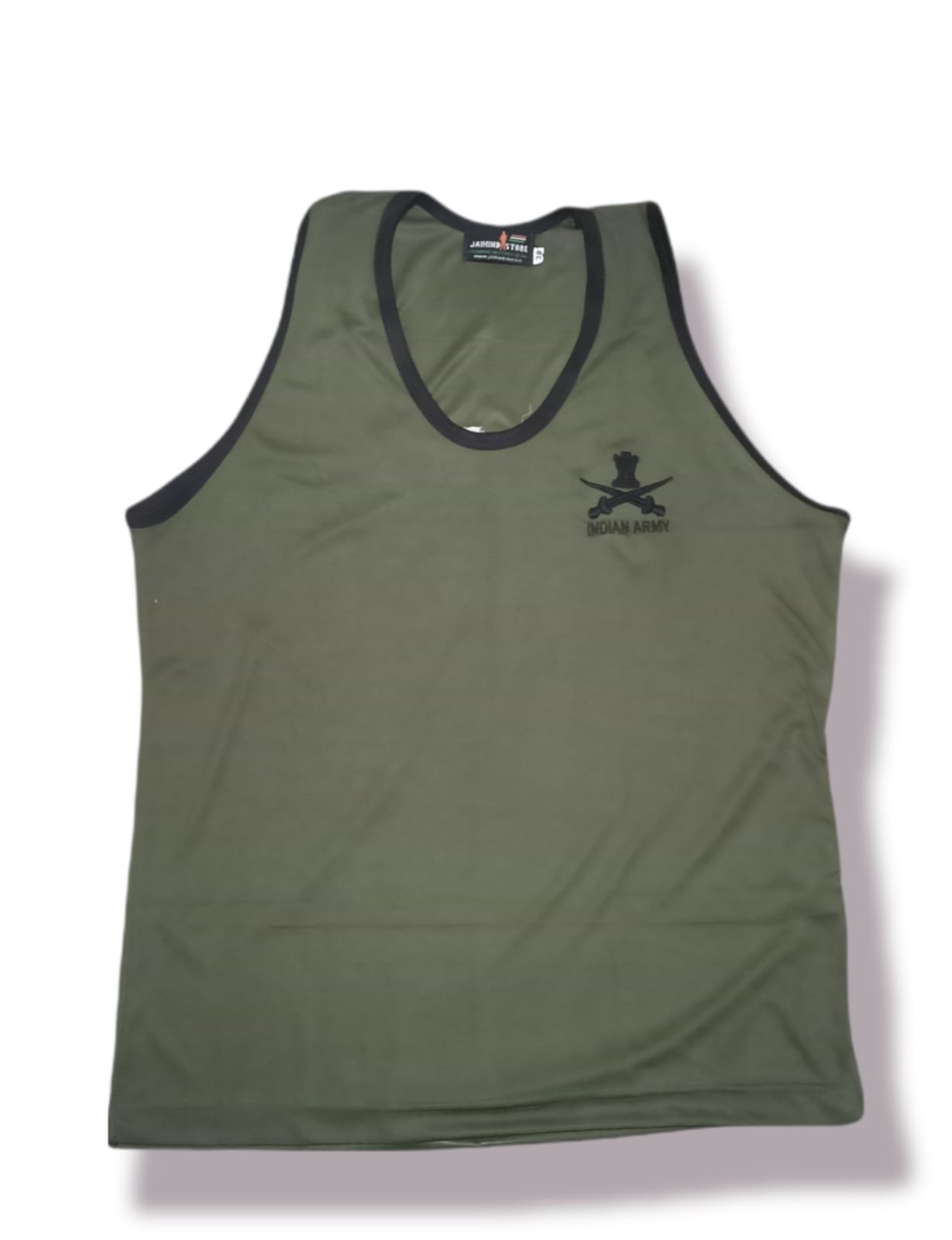 Sando Sleeveless T-Shirt Dark Green With Black Indian Army Print