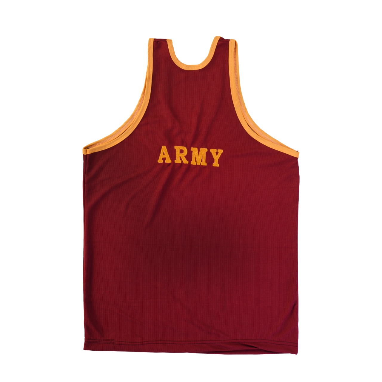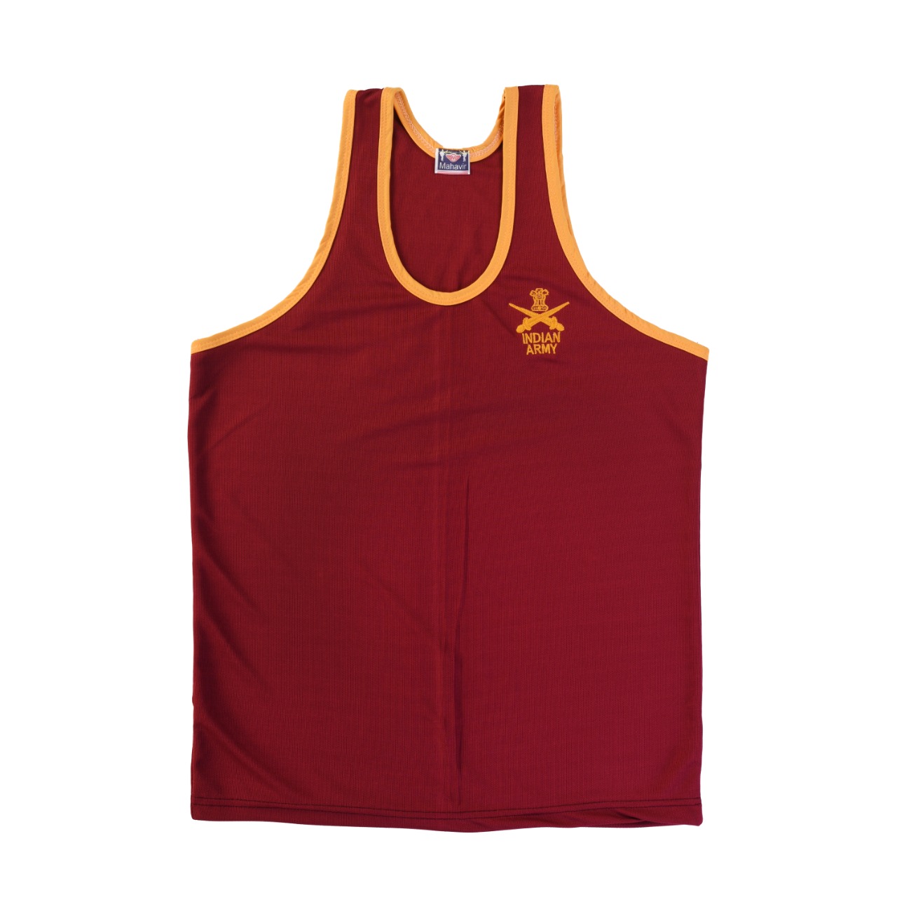 Sando sleeveless t-shirt maroon and yellowy with Indian army print