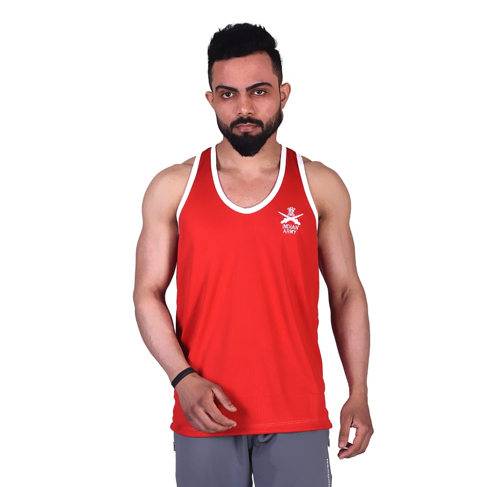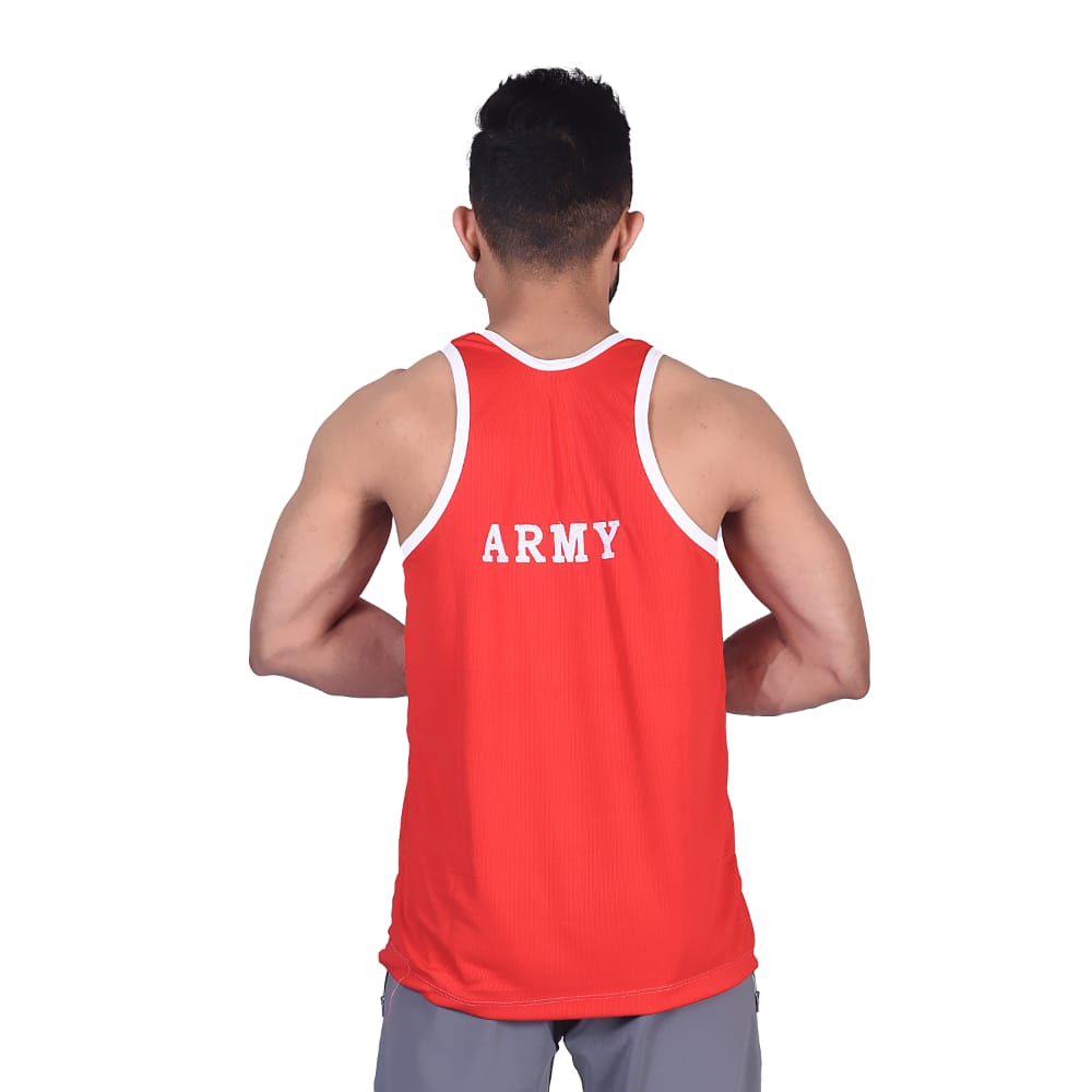 Sando sleeveless t-shirt red and white with Indian army print