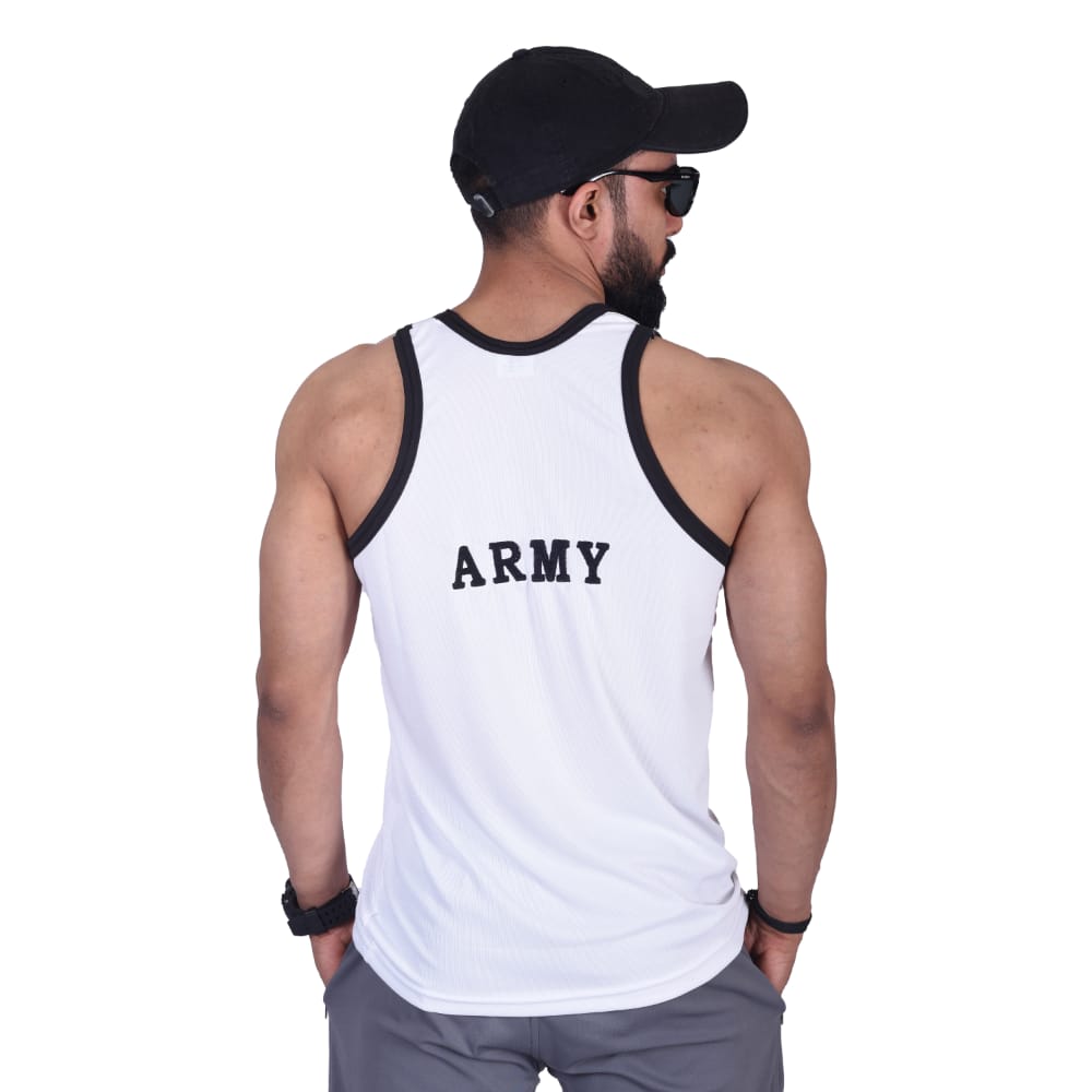 Be the first to review “Sando sleeveless t-shirt white and black with Indian army print” Cancel reply