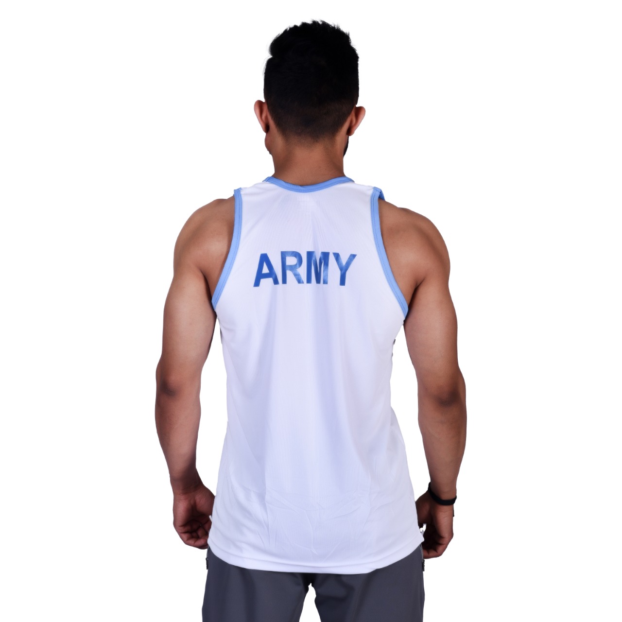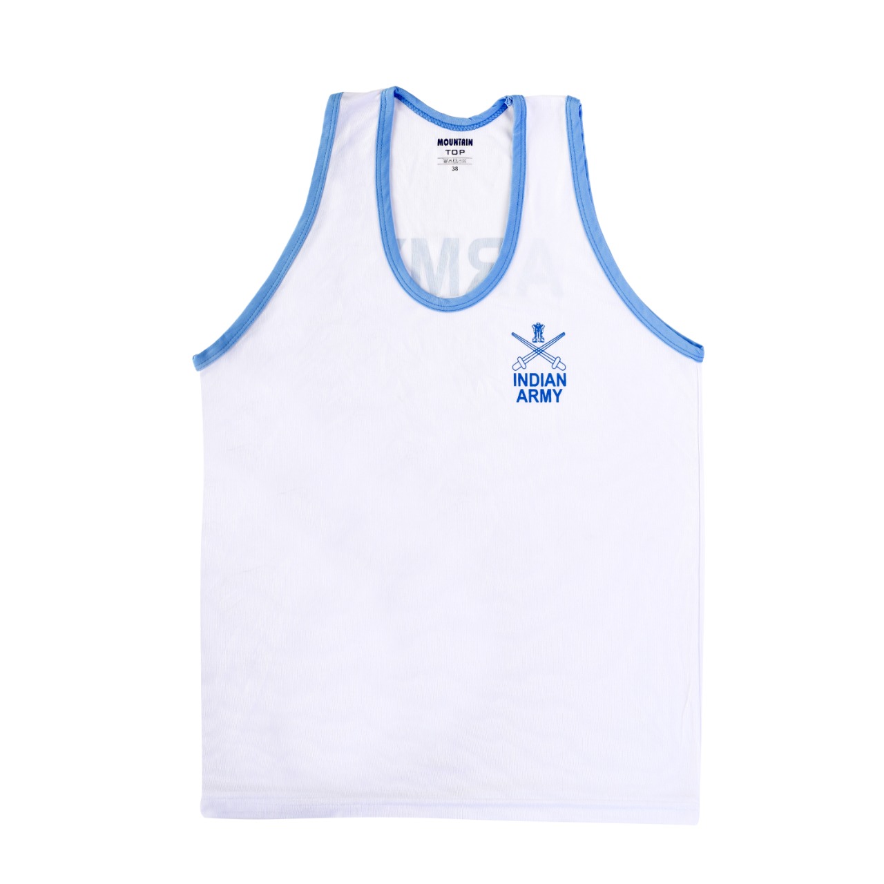Sando sleeveless t-shirt white and sky blue with Indian army print
