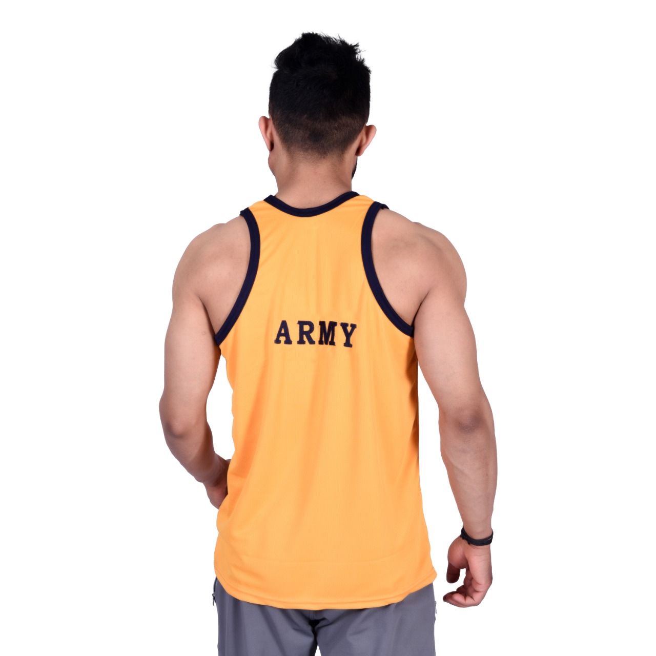 Be the first to review “Sando sleeveless t-shirt yellowy and black with Indian army print” Cancel reply