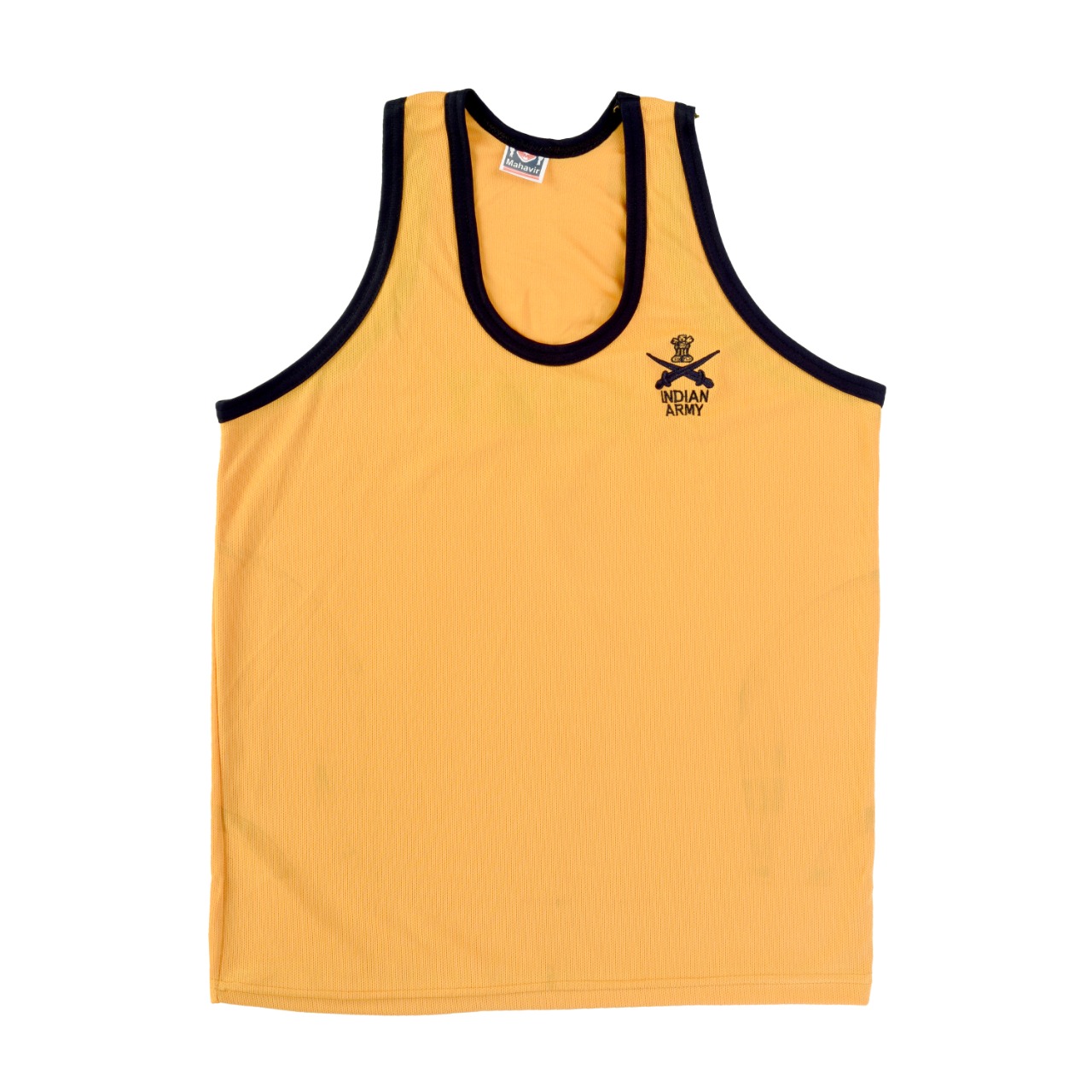 Sando sleeveless t-shirt yellowy and black with Indian army print