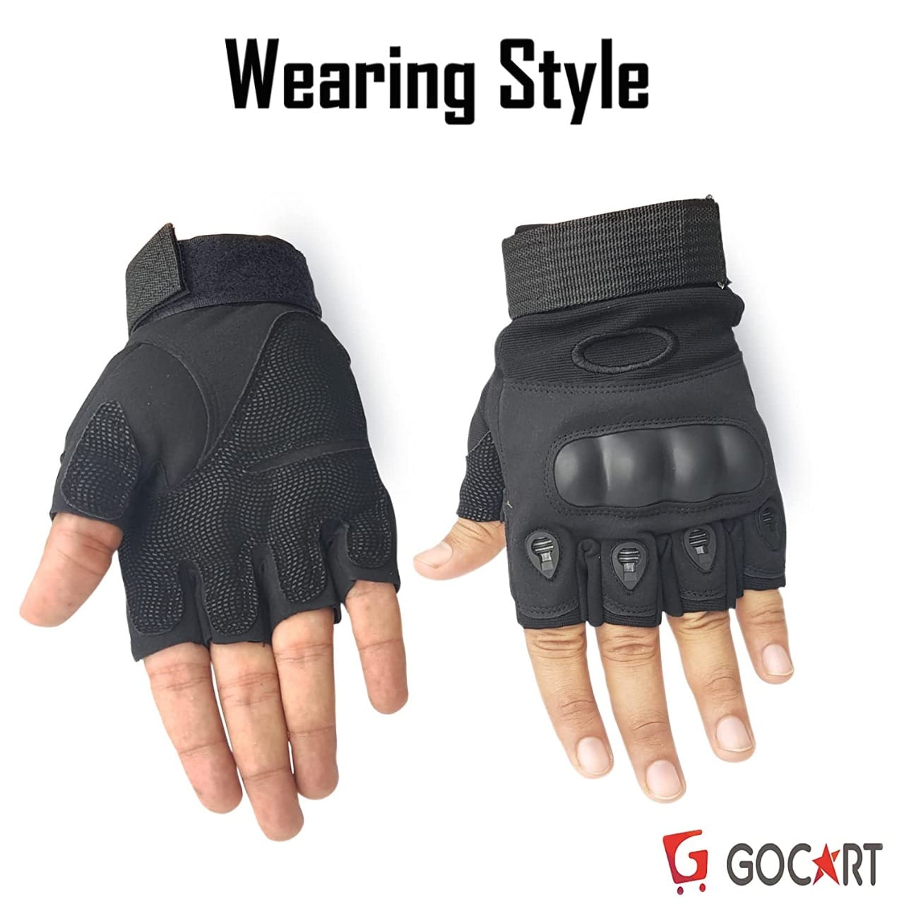 Tactical Half Finger Gloves for Sports, Hard Knuckle,Hiking,Cyclling,Travelling,Camping,Outdoor,Boxing, Motorcycle Riding, Arm Shooting Gym Gloves | Army Black Colour